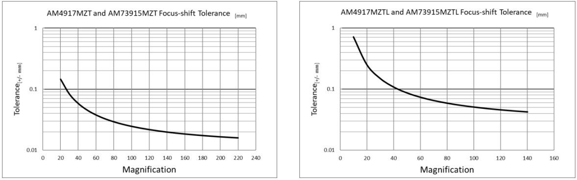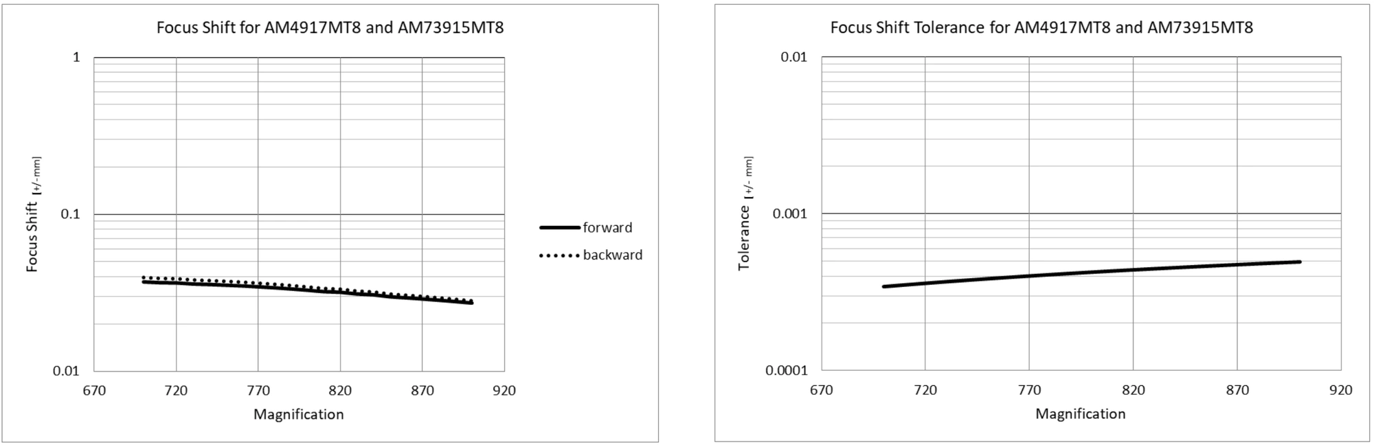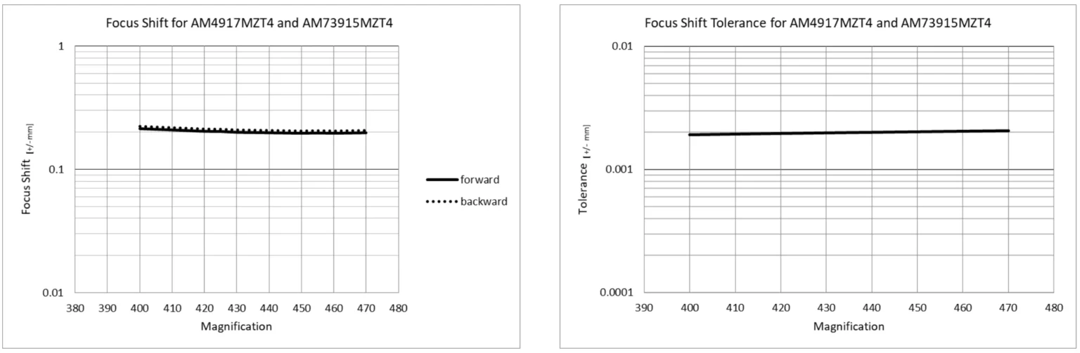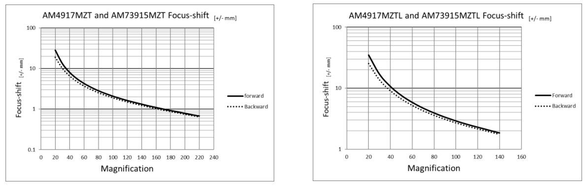 Table with focus shift parameters of AM4917MZT and AM4917MZTL