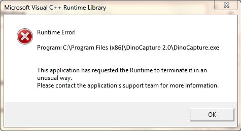 DinoCapture encountered a problem while checking for automatic updates. This may occur in a networked environment in which a firewall blocks DinoCapture from checking for updates.