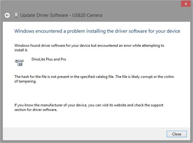 Unable to install an older Dino-Lite Classic, Dino-Lite Plus or Dino-Lite Pro (model 211, 311(S)(H), 313) on a computer running Windows 8, 10, 11 or above.