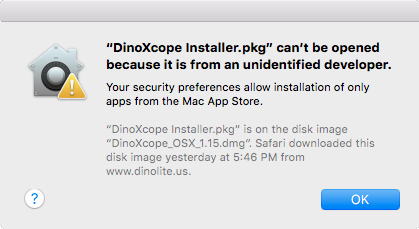 An error message that is commonly seen when installing the DinoXcope software is the “unidentified developer” error.