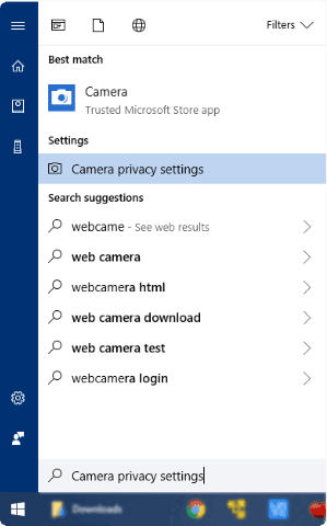 2 - Type Camera Privacy Settings Click to open the Camera privacy settings menu or press the (Windows key)