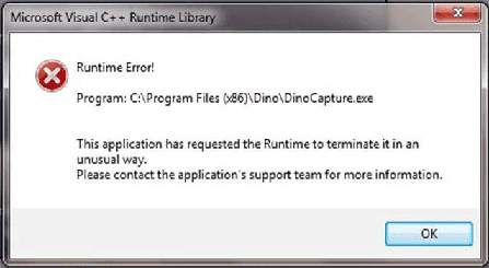 During startup of DinoCapture, the following error message occurs: Runtime error 481/invalid picture
