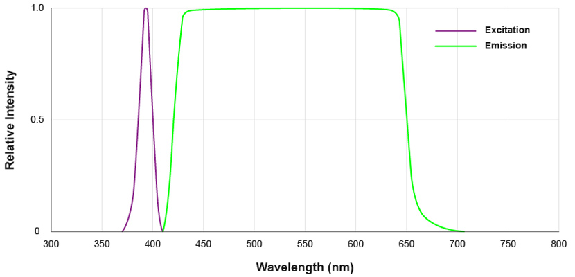 Detect a range of fluorophores from cyan to red with the AM4517MT-CFVW high-sensitivity 20x ~ 220x digital microscope. Using 400 nm excitation lights and a 420 nm ~ 650 nm emission filter, this model is suitable for a wide range of probes such as Hoechst 33342, GFP, and Alexa Fluor 405. This model features AMR to ease measurements.