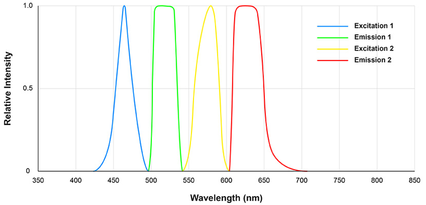 Emission filter | green (505 nm ~ 535 nm) and red (610 nm ~ 650 nm) fluorescence |