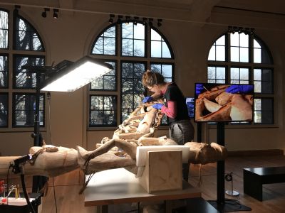 De restauratie vond plaats in de Lichthal, de centrale hal van het museum. "Op die manier kon het bezoekend publiek makkelijk meekijken naar ons werk. Dat meekijken kreeg een extra dimensie doordat bezoekers op een scherm op detailniveau zagen wat wij al werkend in beeld kregen." Dichterbij een restauratieproces kun je als museumbezoeker niet komen.