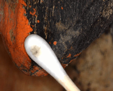 Precisiewerk dus. Het menselijk oog is niet in staat om langere tijd dit soort subtiele nuances waar te nemen. Een van de restauratoren: ,,Met de Dino-Lite microscoop konden we tijdens het schoonmaakwerk goed zien waar de grens lag tussen vuil, overschilderingen en de originele verflaag. Wij gebruikten deze microscoop voor en na het reinigen van het oppervlak. Het was de enige manier om de veranderingen goed te kunnen zien. De Dino-Lite bleek ook in dit opzicht superflexibel. Ook de timelapse-functie kwam tijdens het herstelproces goed van pas. Daarmee kon worden gedocumenteerd hoe laagje voor laagje naar de originele verflaag werd toegewerkt.